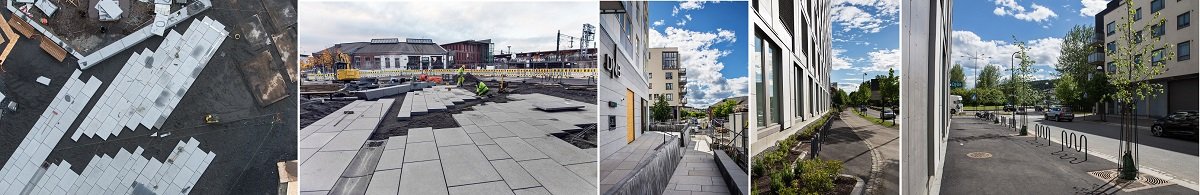 I utgangspunktet var det to separate entrepriser hvor den ene omfattet bl.a. vann og avløp, veg, fjernvarme og kabelanlegg. Den andre, som var anleggsgartnerentreprisen, omfattet alle øvrige utenomhusarbeider med blant annet terrengbearbeiding, steinlegging, beplantning, betongarbeider, (trapper, murer etc), samt anleggelse av utstyr og spesialelementer. Vi har en utmerket samarbeidspartner i Spydeberg Utemiljø AS til denne type arbeider. Derfor la vi også inn bud på denne entreprisen, og fikk jobben.