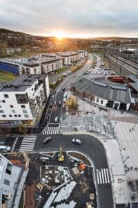 Når et helt nytt kvartal skal bygges er det mye gravearbeid som må utføres. Det kan se både kaotisk og lite planlagt ut til tider, men jeg kan love at det ligger mye forarbeid før vi setter første graveskuffe i jorda, sier Fredrik. Vi kan på mange måter si at vi har utført både det usynlige, men også utført finishen som står for førsteinntrykk og trivelsfaktor.