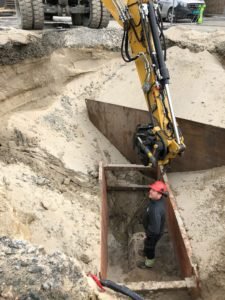 Vi startet prosjektet med å legge 250 meter ny vannledning. Denne delen ble utført med styrt boring av Presisjonsboring AS. Både boringen og inntrekningen av ny vannledning gikk bra.